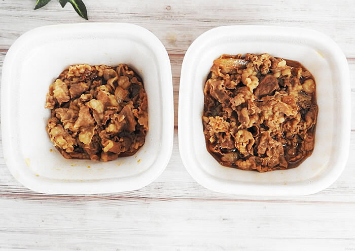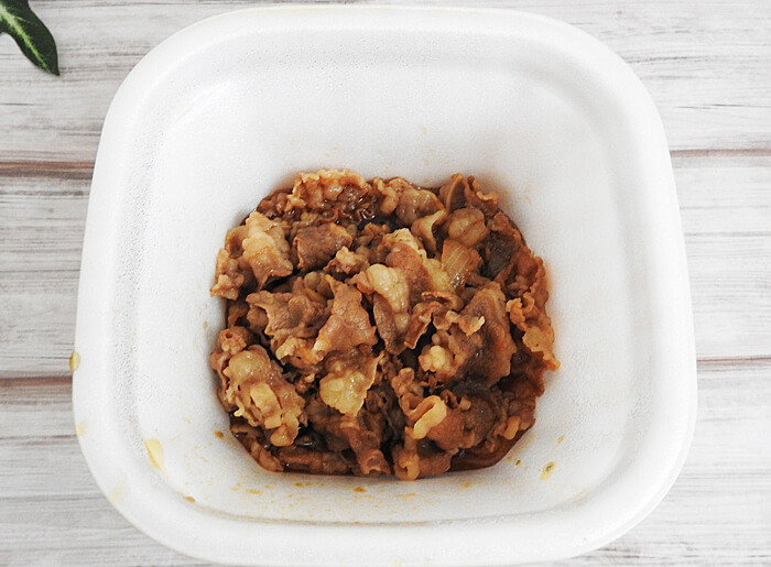 ふたを開けて中身を見てみると、牛肉が少なく見えました。「これだけでは足りない気がする……」というのが私の第一印象でした。
