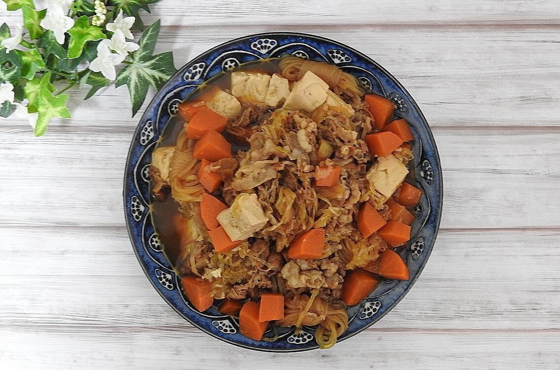 私・夫・4歳・2歳の家族4人で食べる分には十分すぎる量に仕上がりました。とにかくすき焼き風の香りが漂ってくるので、料理中に夫や4歳の息子が「美味しそうなにおいがしてきた!」とテンションがあがっていました。