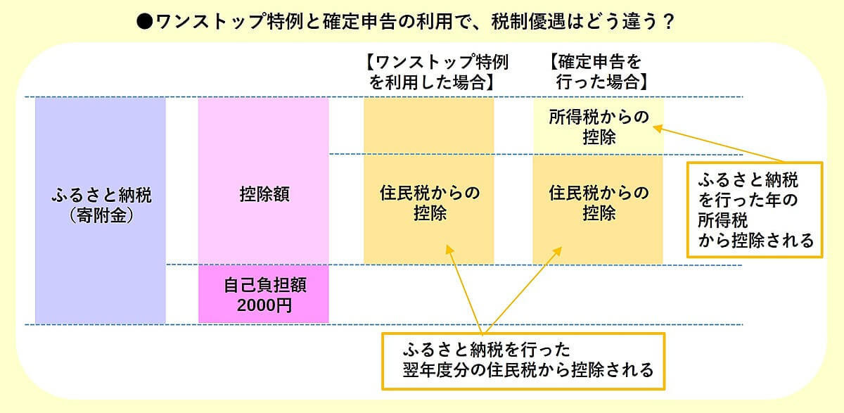確定申告をする場合と同様に、ワンストップ特例を使った場合も自己負担分は2000円だけです。ただし確定申告での控除と異なり、ワンストップ特例では全額が住民税からの控除となります。