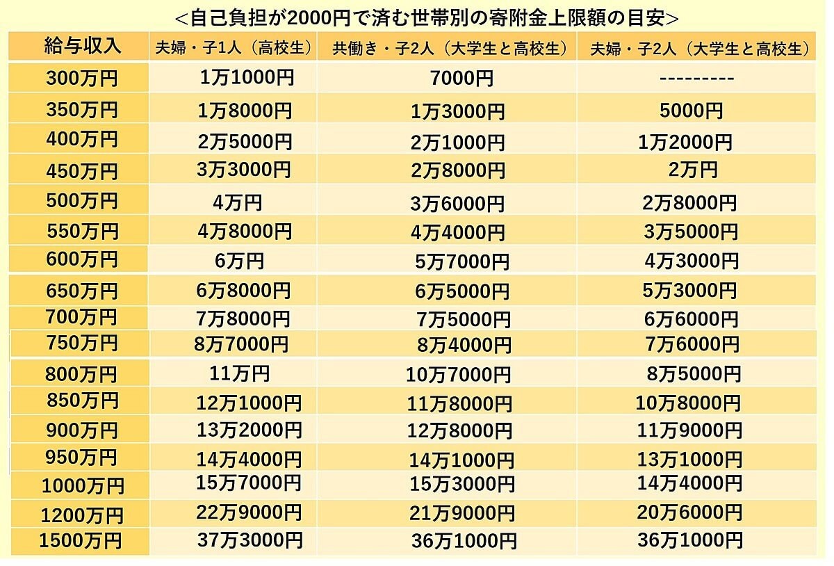 ① 所得税:【(寄付金の年間合計額-2000円)×所得税率=控除額】※
