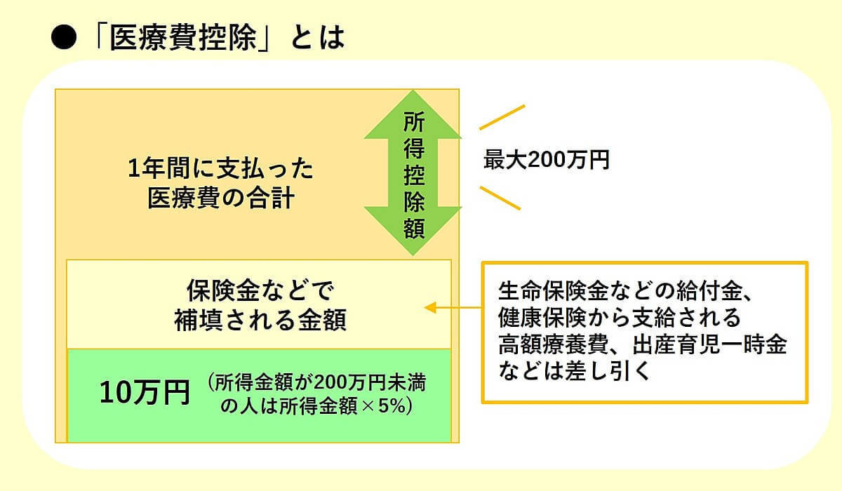 医療費控除の金額は、次の式で計算した金額(最高で200万円)です。