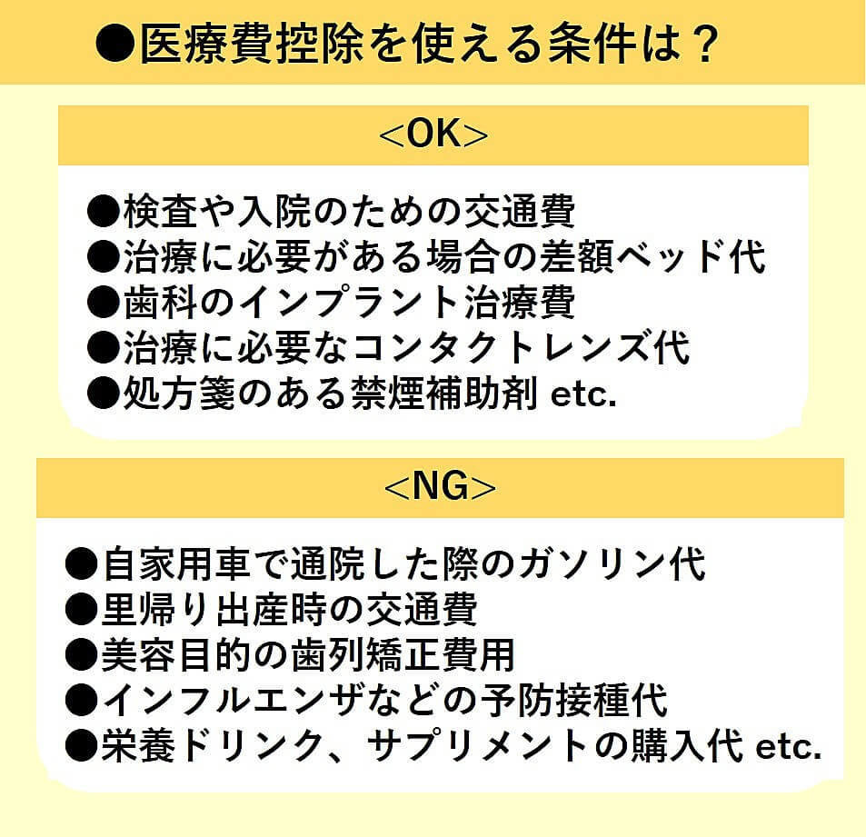 医療費控除とは、その年の1月1日から12月31日の1年間に支払った医療費が10万円を超える場合に、その医療費の額を基に計算した金額を所得金額から差し引くことができる制度です。申告をする人と、その人と生計を一にする(日常生活のうえで資本を共にする)配偶者や親族のために支払った金額が対象となります。医療費控除の対象となる詳細な条件などは下記の通り明記されています。
