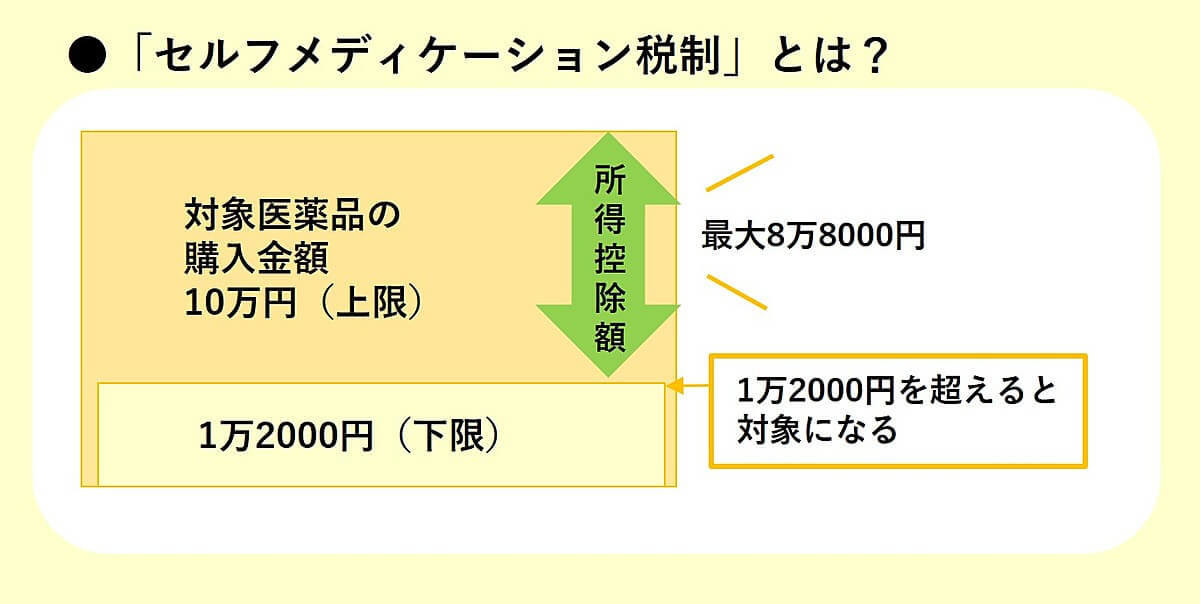 一方で、セルフメディケーション税制(特定の医薬品購入額の所得控除制度)とは、健康維持のために一定の取り組みを行なっている(健康診断などを受けている)人が、指定の医薬品を購入した際に、その購入費用について控除を受けられる制度です。