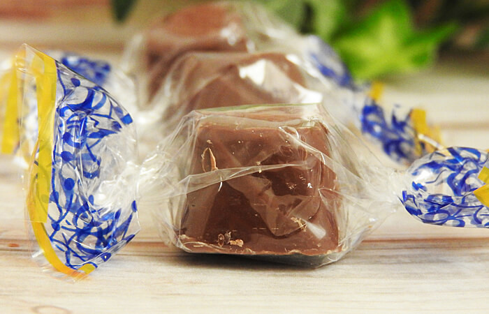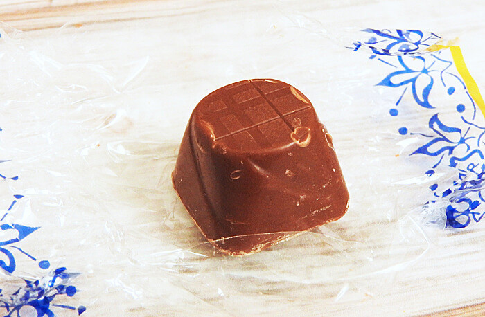 チョコレート自体は小振り。一口でぱくっと食べられるサイズ感です。カカオ成分よりも、コクのあるミルクが口の中いっぱいに広がります。少々ねっとり感がありますので、飲み物は用意した方がいいかもしれません。