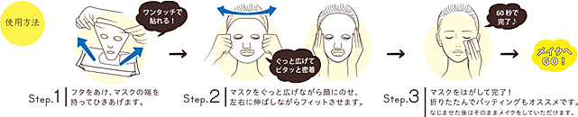- マスクをはがして完了! 折りたたんでパッティングやふきとりもオススメです。なじませた後はそのままメイクをしていただけます。