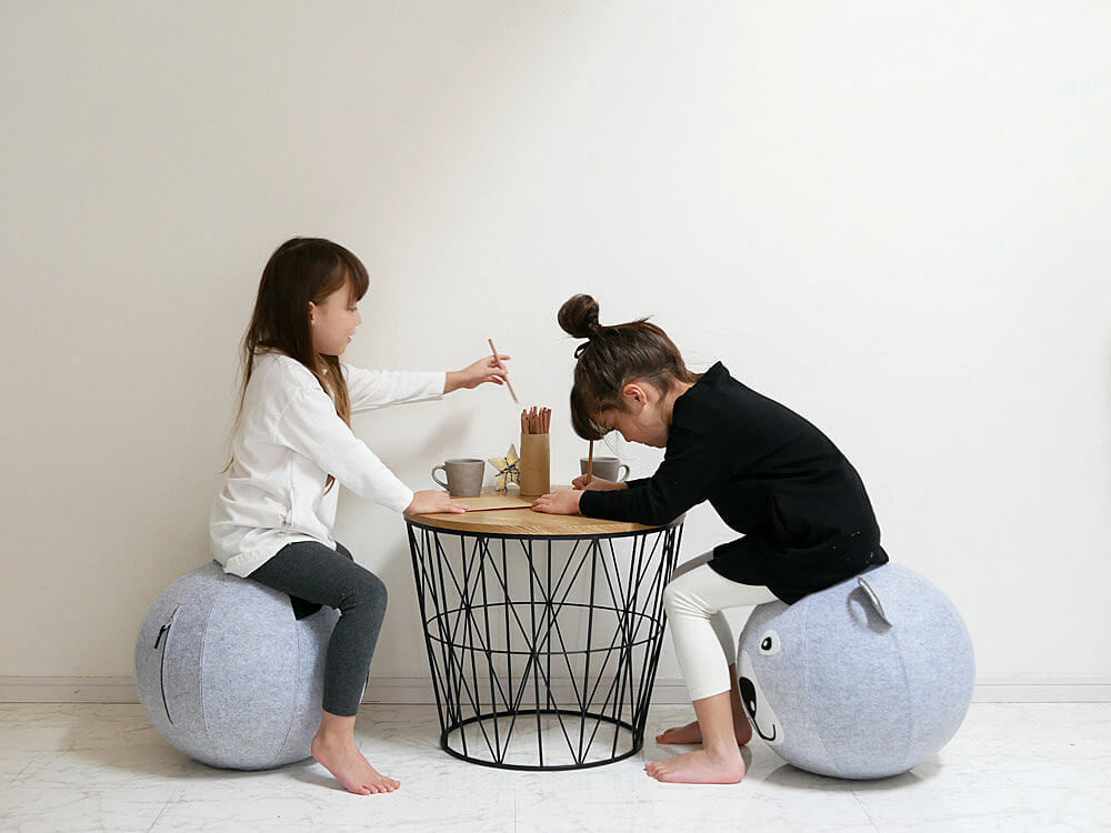 お絵かきやお勉強の時に椅子としても活躍するシーティングボール。座っているだけで自然と体幹が鍛えられるので、椅子代わりとして使うのもおすすめですよ。