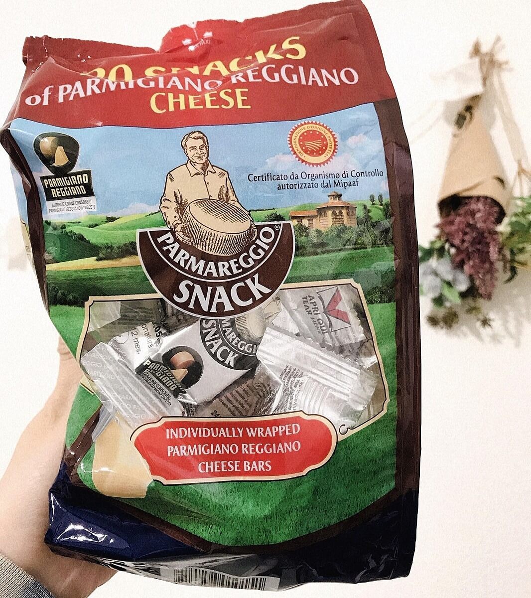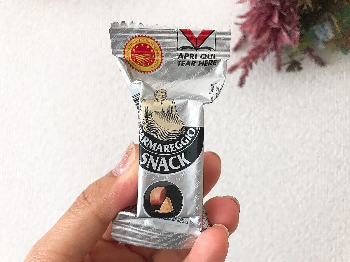実はこれ、先程紹介したチーズと同じ種類、チーズの王様パルミジャーノレッジャーノ」の 20個入りです。何が違うかというと、こちらは何かにかけたり削ったりするものではなくそのまま味わうスナックチーズなんです。