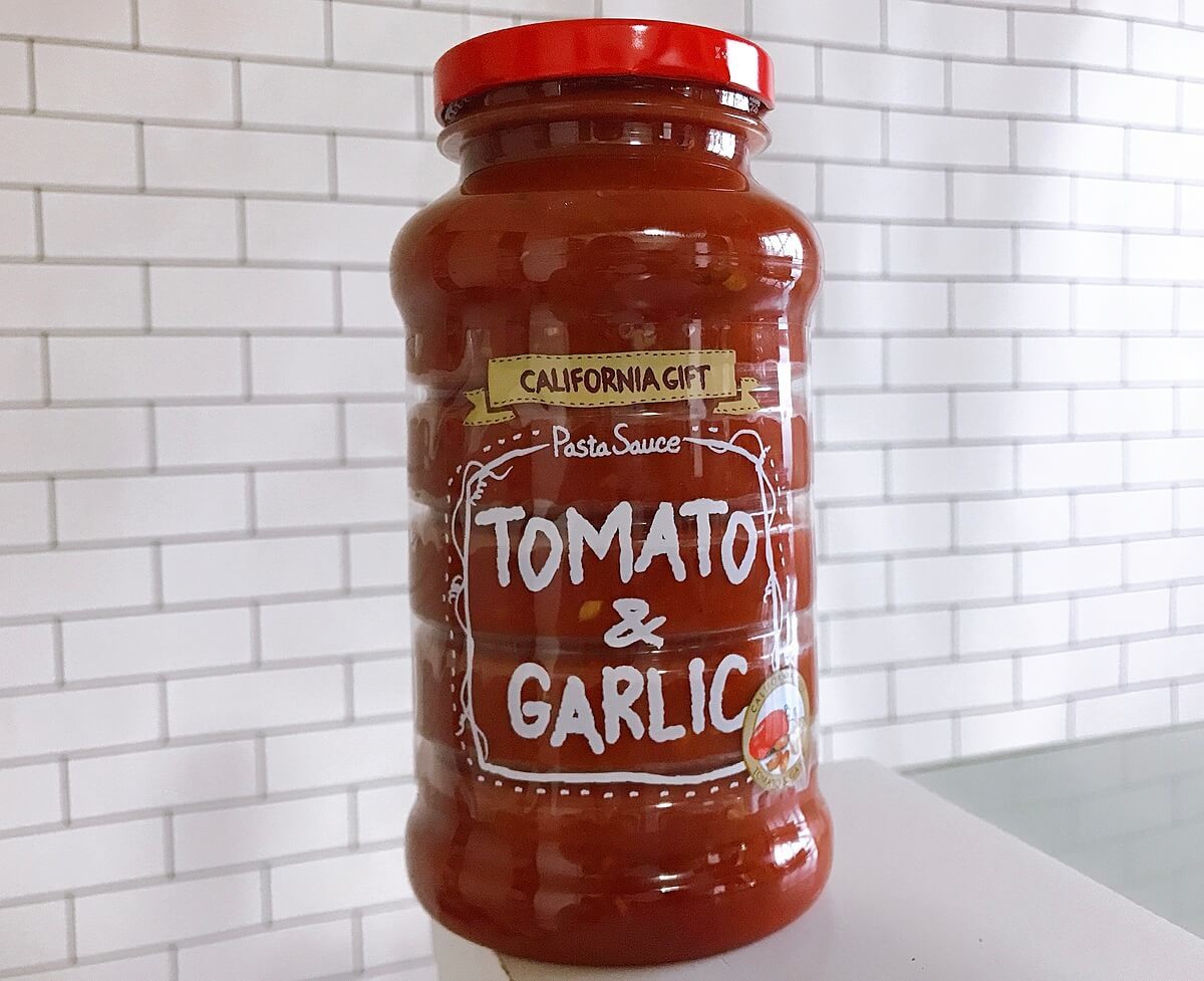 こちらもカルディで購入できるパスタソース「カルフォルニアギフト トマト&ガーリック」税込537円。 間違いない食材のコラボソースなんですがこれが本当に優秀なんです。