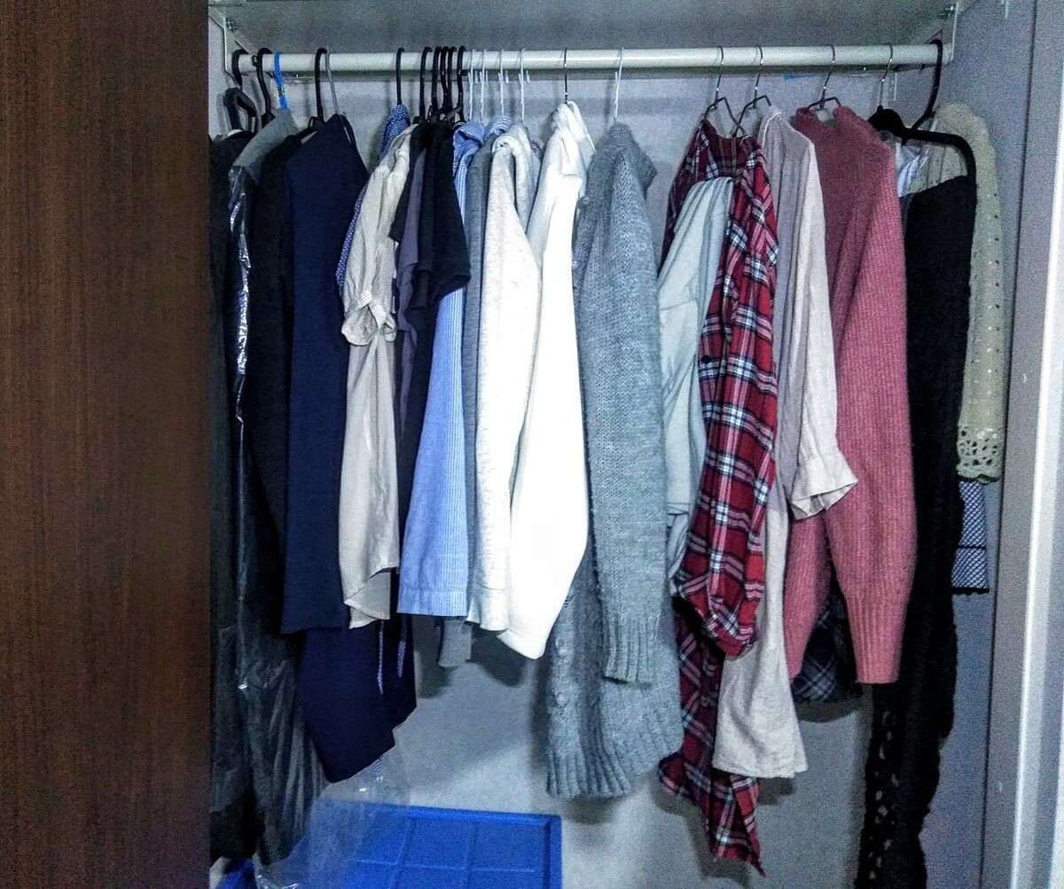 クローゼットの下には、衣装(収納)ケースが置いてあると思います。 なので、ケースに服がかからないように、枚数や丈を調整する必要があります。