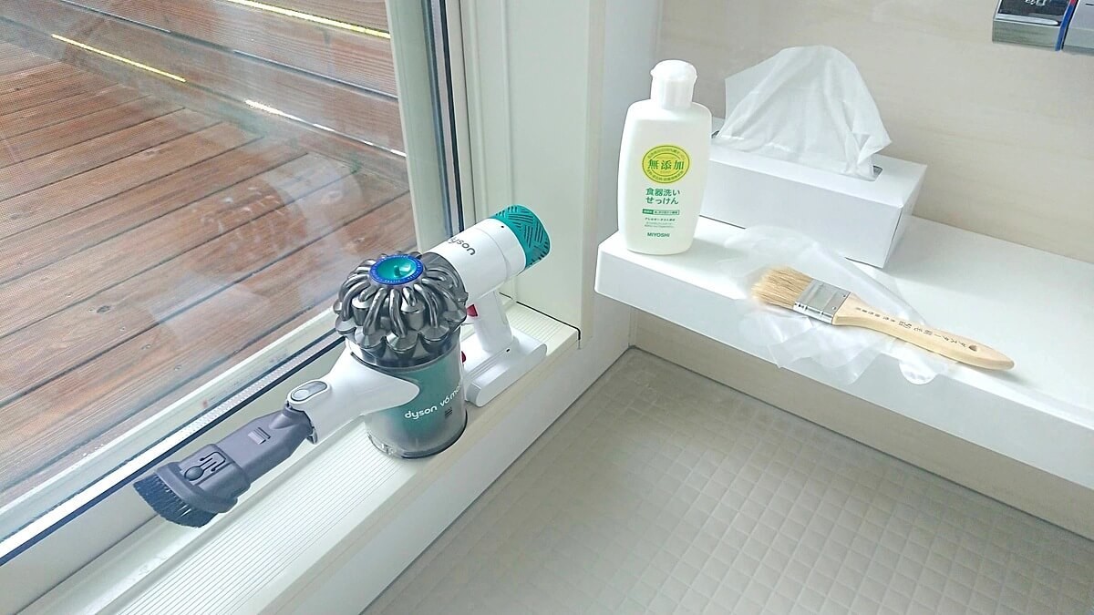 掃除機でホコリを取り除いたら、液体石けんをつけてブラシで洗います。 洗ったら、汚れや石けんかすを残さないように、しっかり水洗いしましょう。