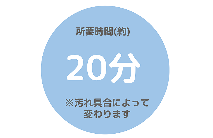 これから紹介する、お風呂の壁掃除にかかる時間は約20分です。週末や時間が取れる時に、しっかりお掃除する場合におすすめです。