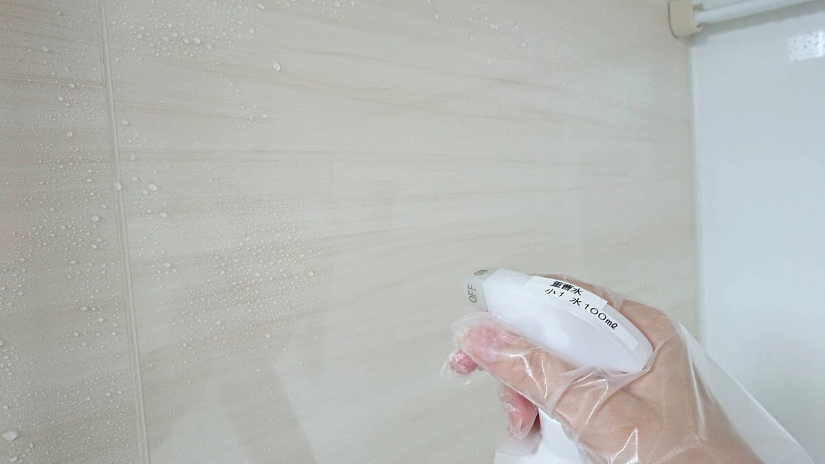 今回は、重曹やクエン酸を溶かしてスプレーボトルに入れ、お風呂の壁掃除に使います。