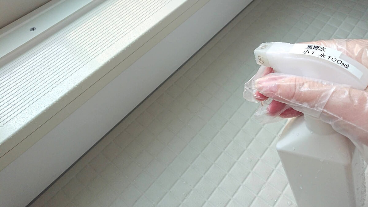 水で洗い流します。重曹スプレーを吹き付けた箇所は、ぬるぬるが残りやすいので、しっかりと洗い流しましょう。