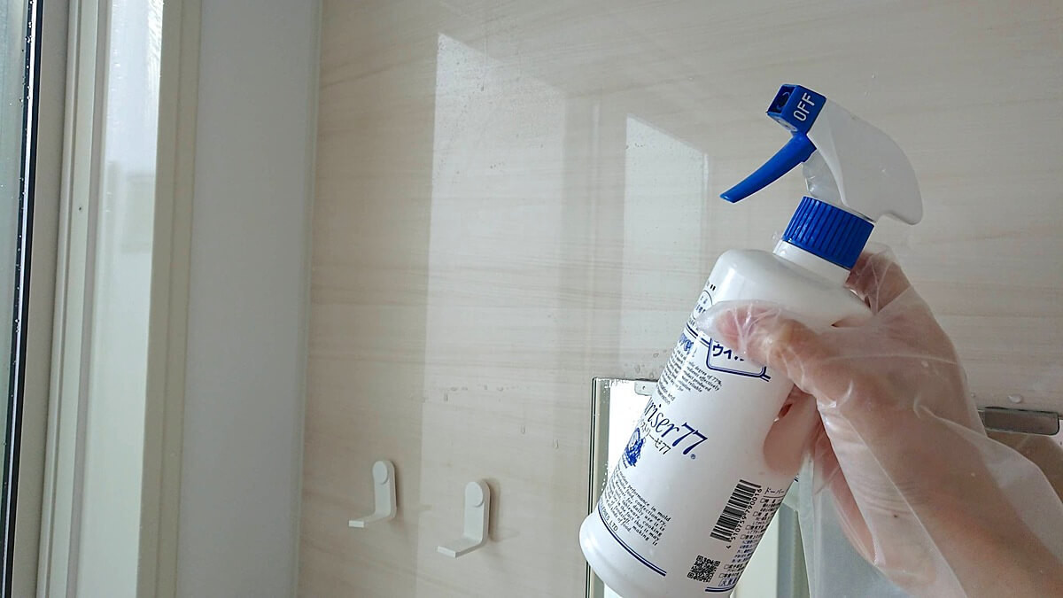 最後にエタノールスプレーをすると、除菌効果がアップします。