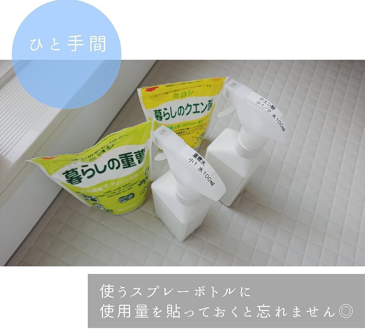 水に溶かしてスプレーを作ったら、スプレーボトルに使用量を貼っておくと忘れません。