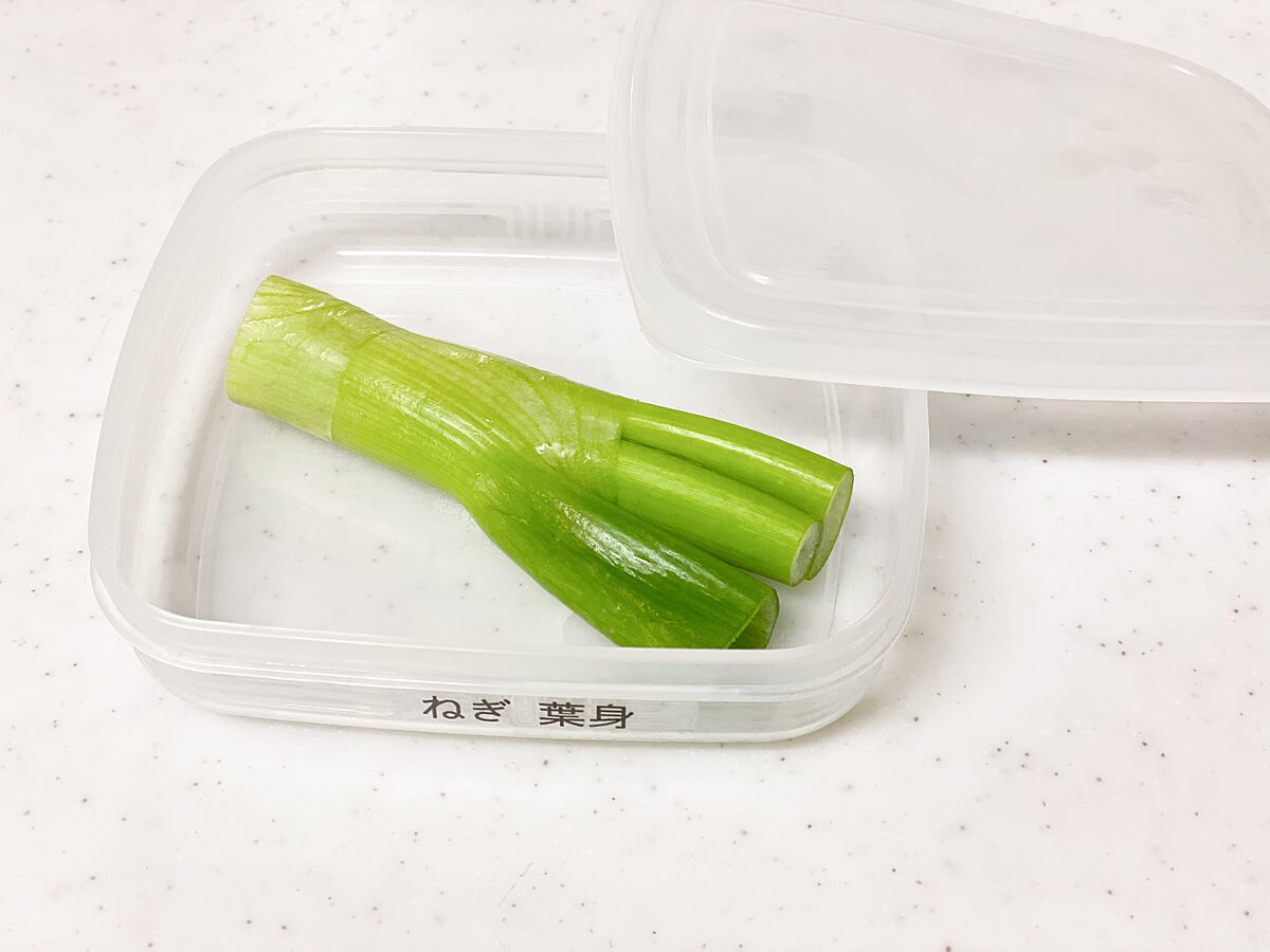 ねぎの葉身(ようしん)は肉や魚を煮込むときの臭み取りに便利ですが、出番が少ないため傷ませてしまいがちですよね。これも、冷凍保存でムダなく使い切ることができます。