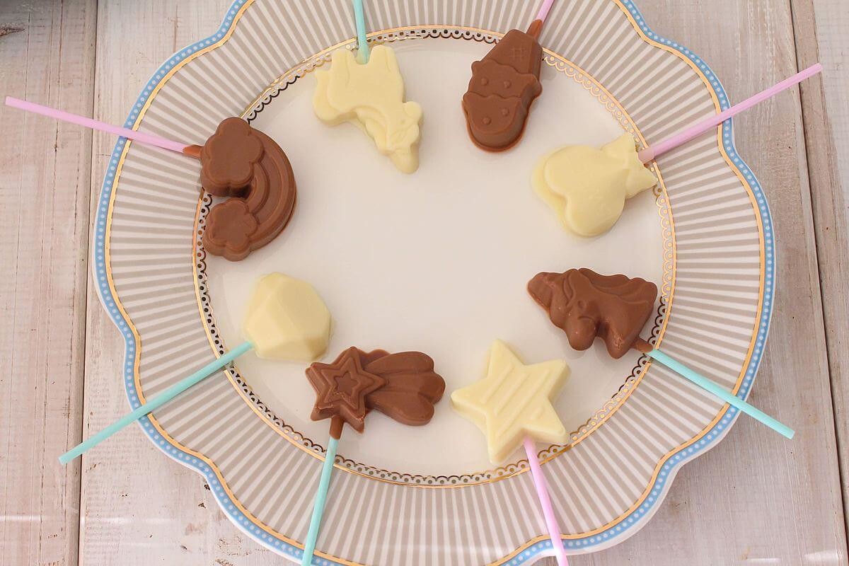 「ゆめかわ ロリポップ型チョコモールド」にもチョコを流し込みます。