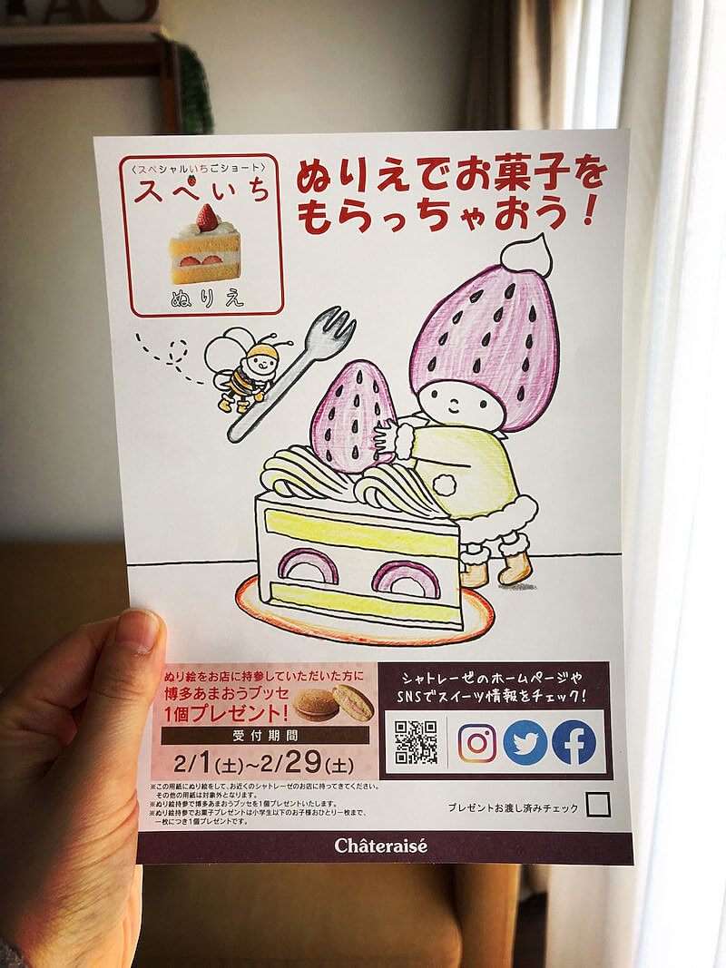 というわけで、今日はまるでショートケーキを食べている様な「博多あまおうブッセ」のご紹介と、それを無料でもらう方法のご紹介でした!