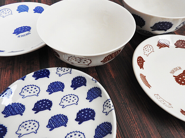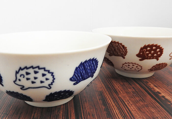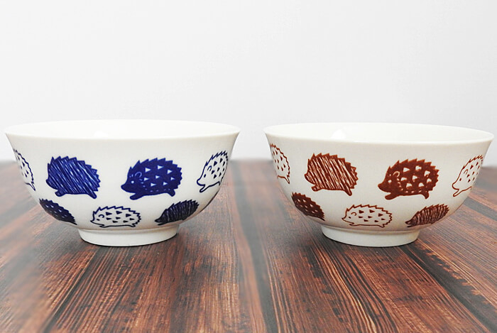 ダイソー・ハリネズミシリーズのボウル。カラー展開は青系と茶色系の2種類です。陶器製のボウルのため、取り扱いには注意して下さいね。