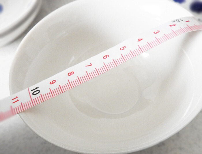 ダイソーの公式インスタグラムによると、ボウルのサイズは9.5cmと10.5cmがあるそうです。サイズが何を指しているのかさっぱりわかりませんが、手持ちのメジャーでお茶椀の直径を計測。すると、10.5~11cmほどありました。