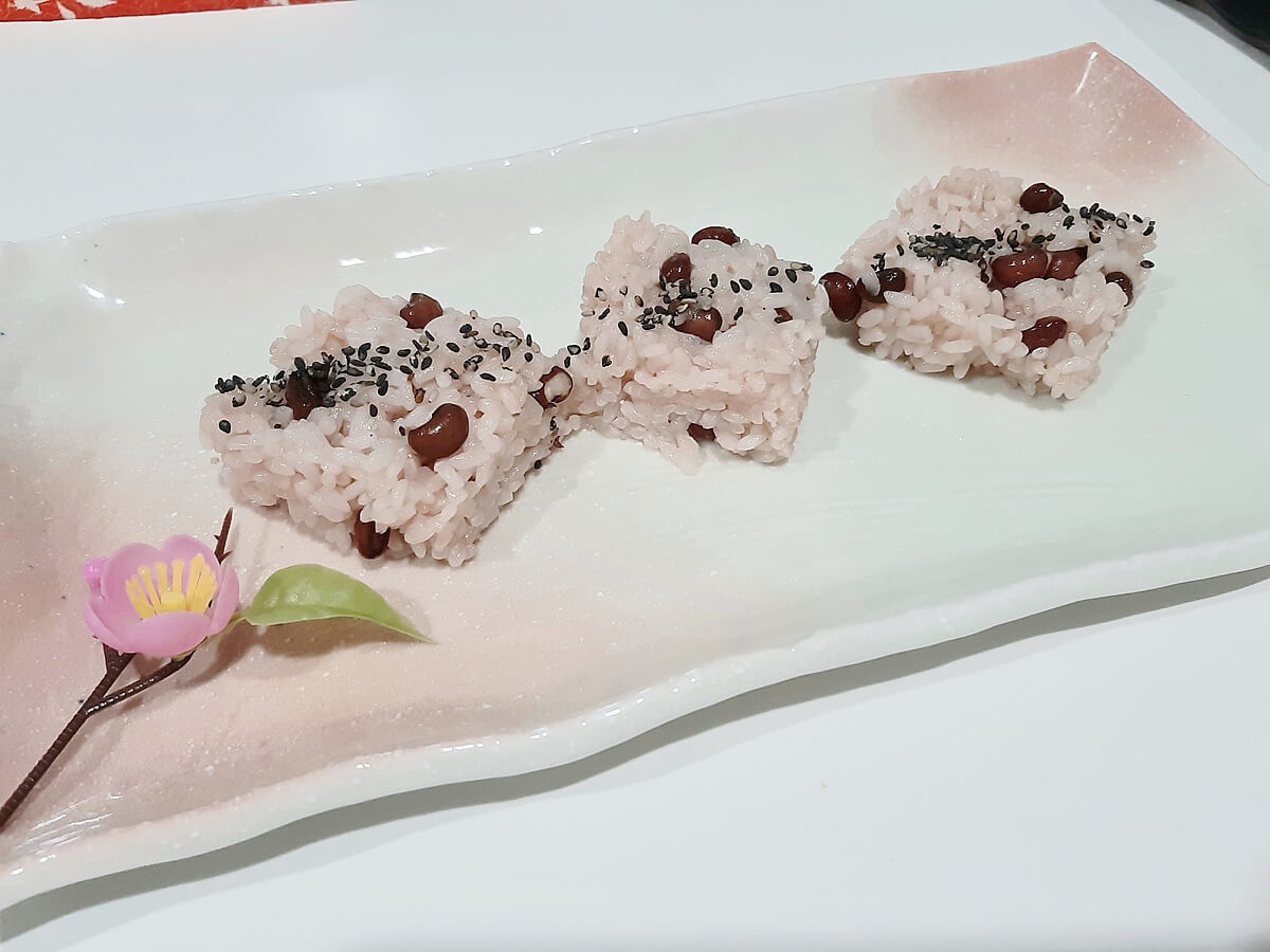 白州名水で炊き上げた茹で汁を使用し、お米を丁寧にセイロで蒸して作るお赤飯。宮城県産のみやこがね米や沖縄の塩などこだわりの素材を使用して作ったものだそうなので、期待値が上がります。