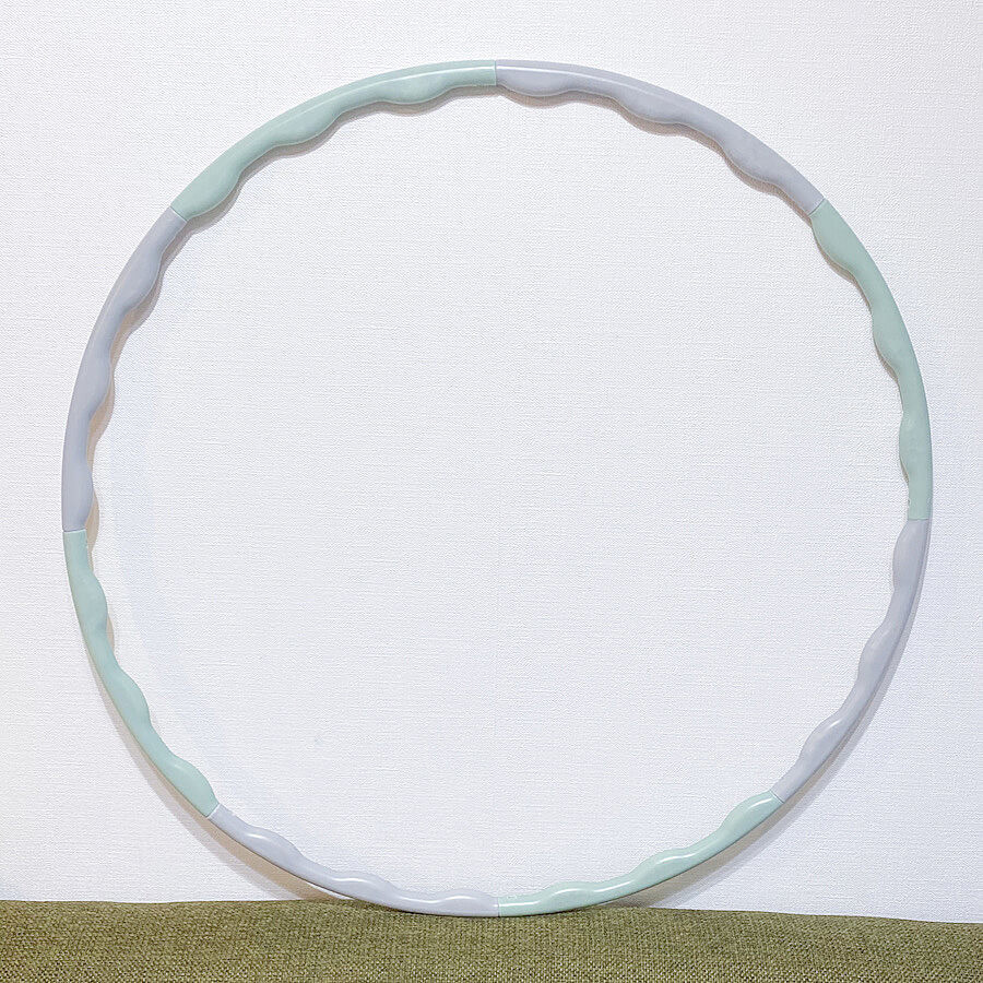グレーとグリーンのパーツがそれぞれ4つずつ入っていて、すべてをつなげていくと直径80cmほどのフラフープになります。