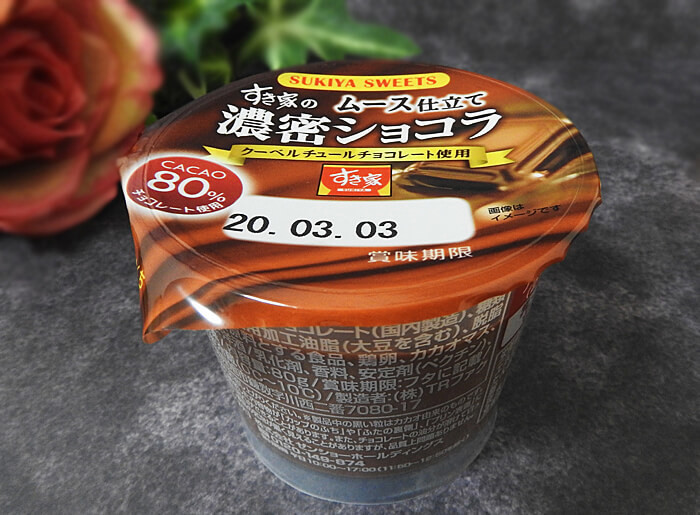 カカオ80%のチョコレートを使用して仕上げた、すき家「濃密ショコラ〜ムース仕立て〜」120円(税込)。とっても安いですよね!