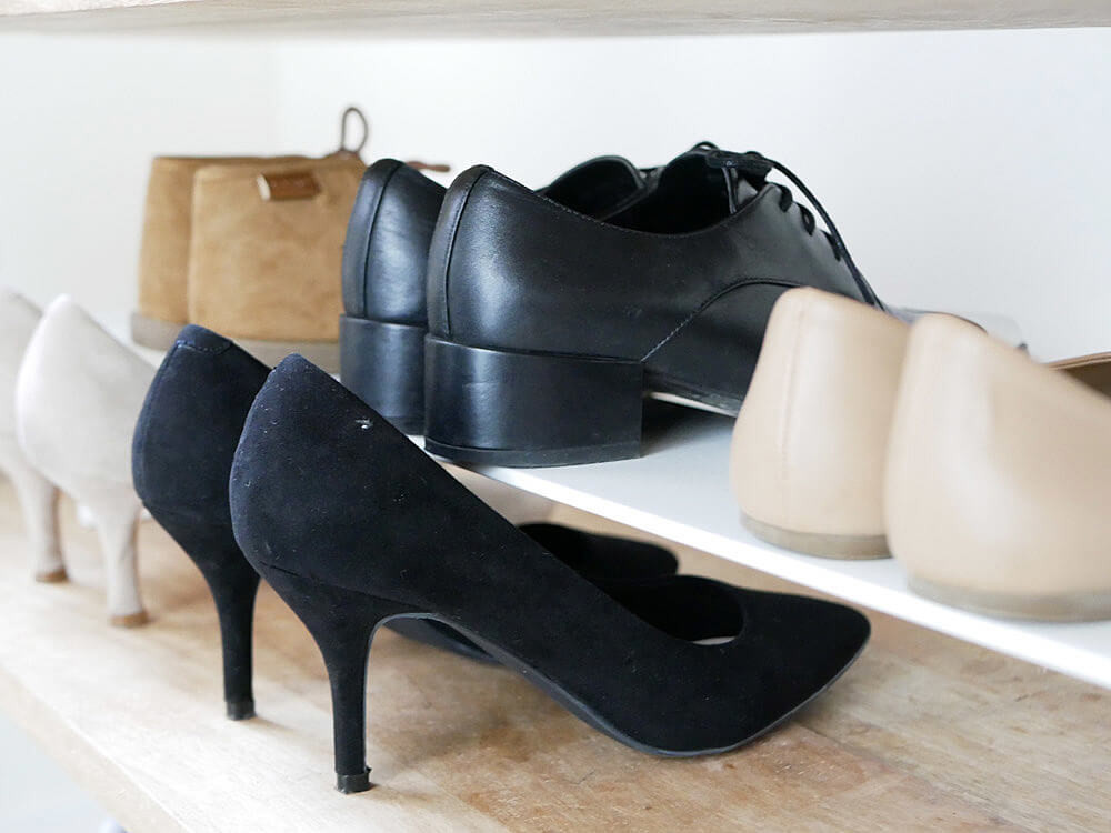 細いヒールのパンプスなどをラックの上に乗せると、靴のサイズによってヒール部分が落ちてしまう場合があるのでラックの下段に置くことをおすすめします。