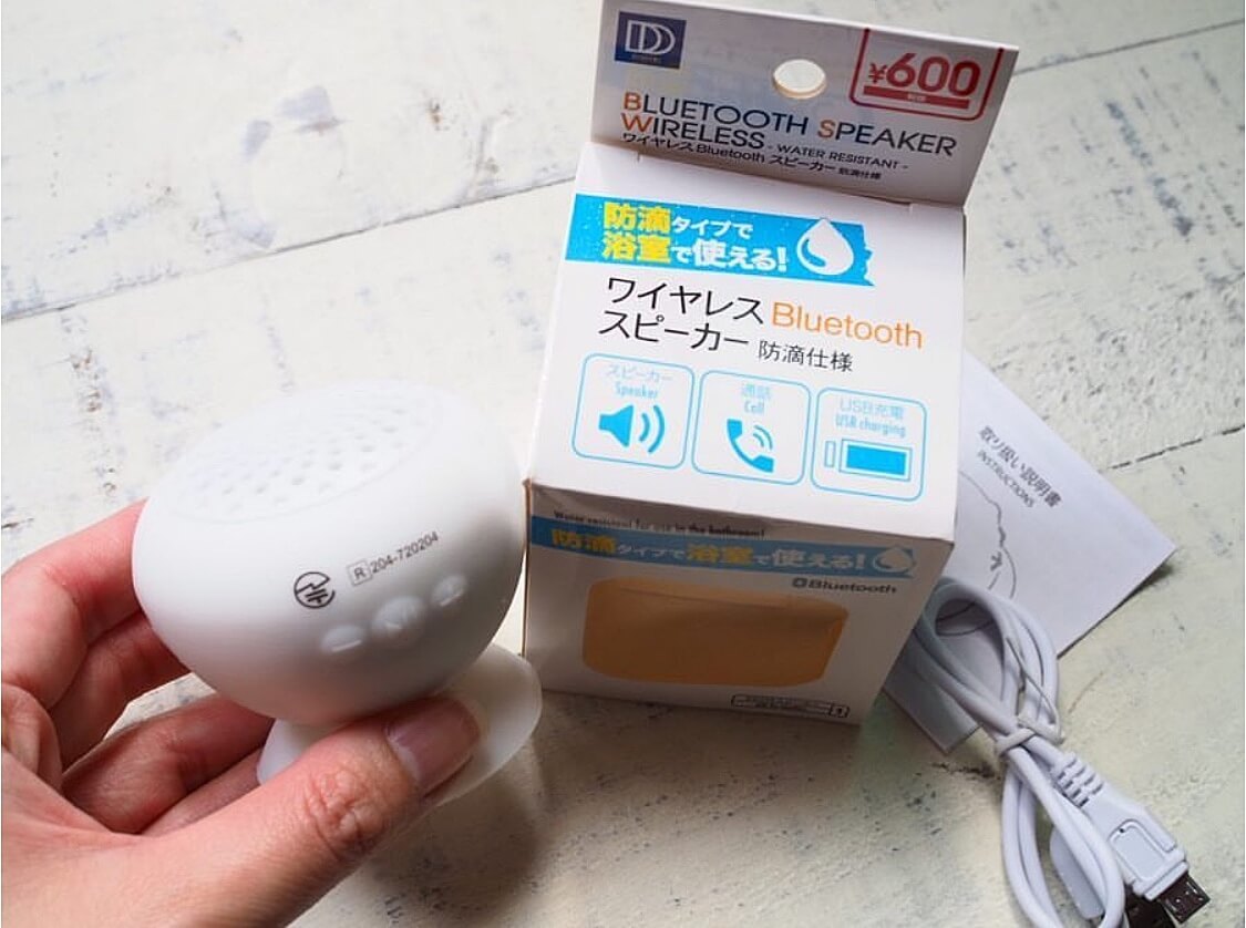 600円商品ではありますが、お風呂場でも使える防滴仕様のブルートゥーススピーカーがこの価格とは、二度見してしまう程の衝撃価格です。