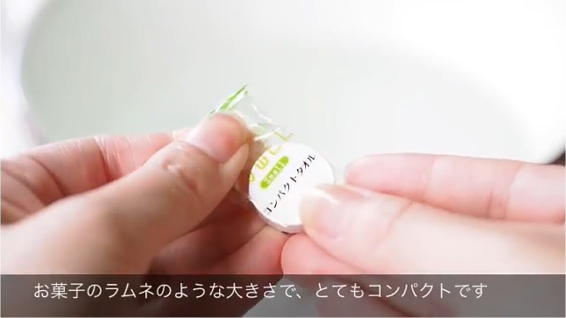 なんと、水につけると一瞬でタオルに変身するんです♪