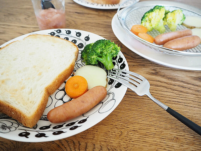 簡単に温野菜が摂れる朝ごはんが、10分ほどで完成しました。