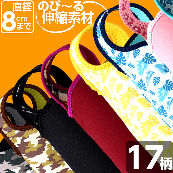 伸縮性抜群のストレッチ素材でタイガーやサーモスなど、多くのボトルに対応している水筒カバーです。
