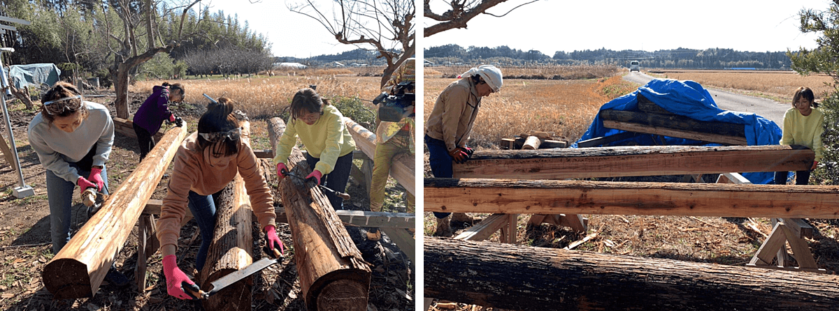 なんと、木を伐採して、伐採した土地を整え、切った木で柱などに使う木材を作るところからスタート。
