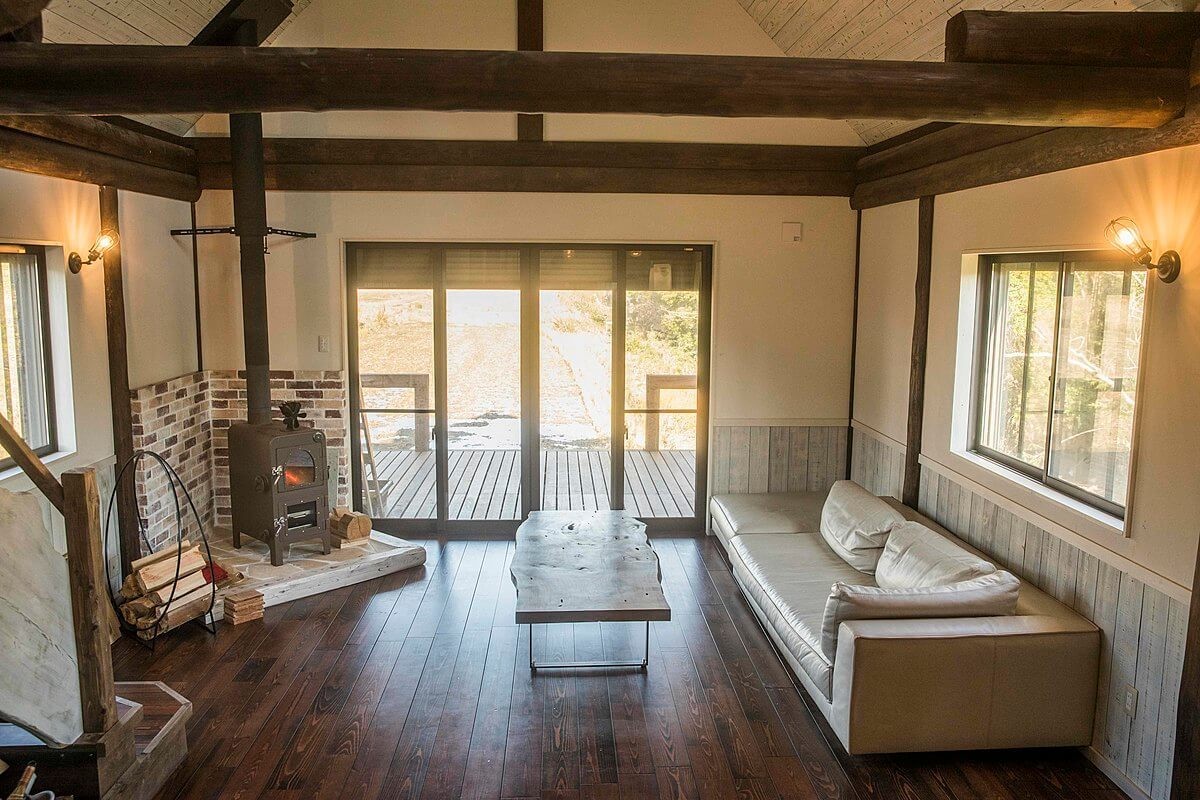 実は、今回ヨムーノDIY女子部のメンバーに家づくりのノウハウを教えてくれる「木こりの源さん(後ほど紹介します)」は、木を伐ってから約5年がかりで自分の家をゼロから建てた経験者。それが、この写真のおうちです。