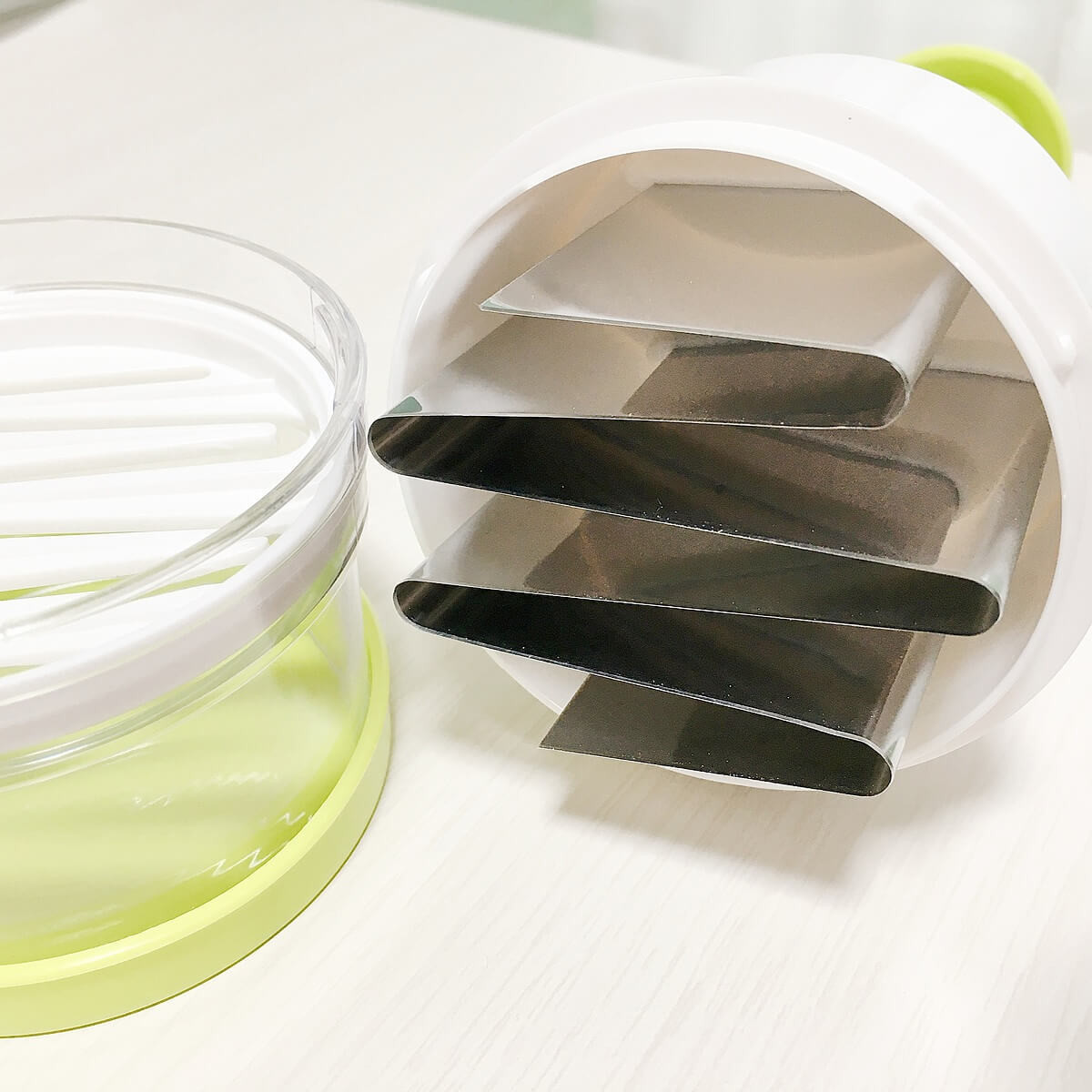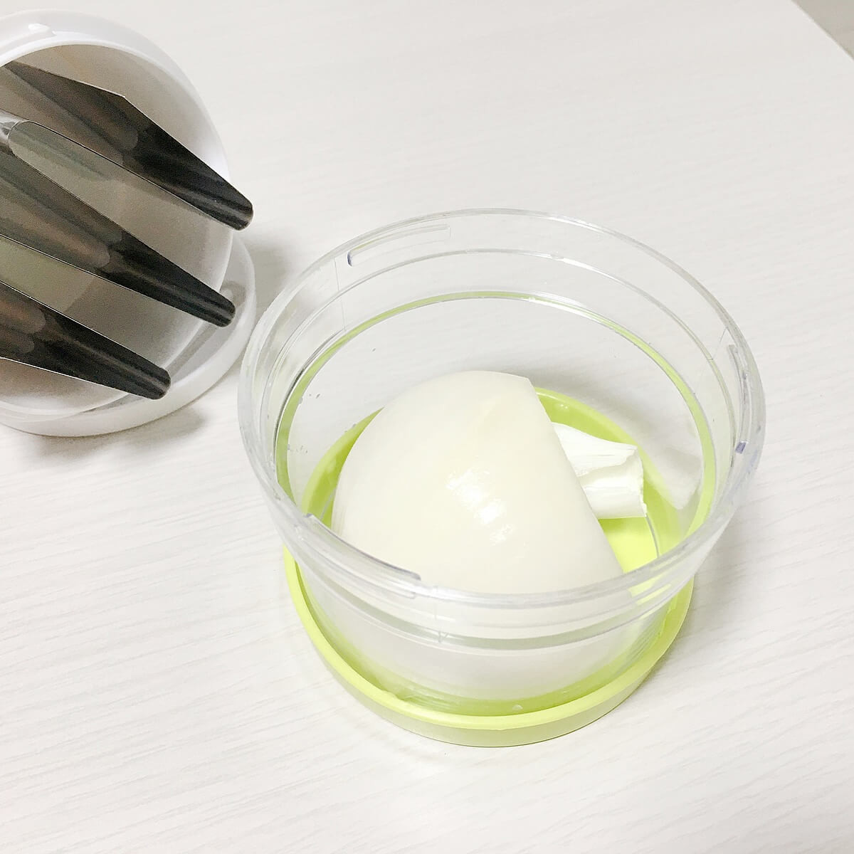 ケースが小さ目なので、大量にみじん切りが必要な場合は、何度も繰り返す必要があります。その点に少し手間に感じますが、オムレツなど少しだけ欲しいときには便利な商品。