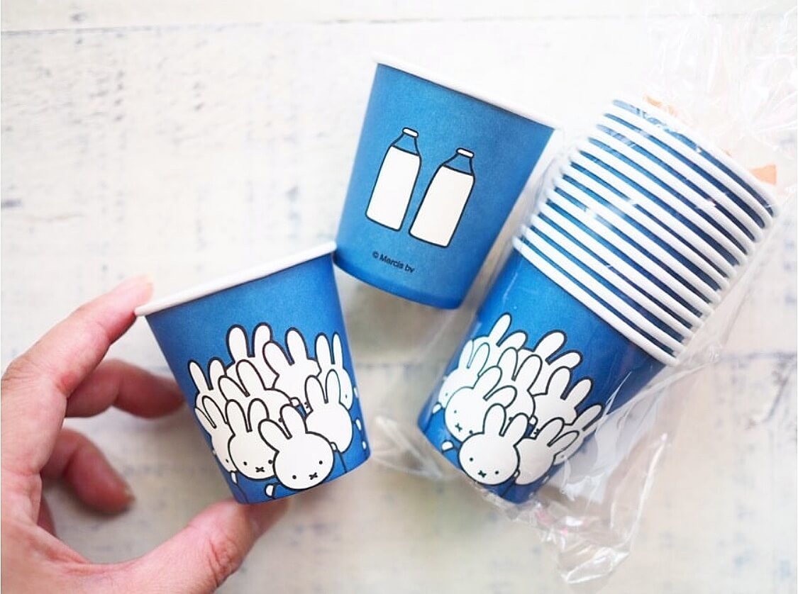 表側にはたくさんのミッフィー、裏側にはミルクボトルが描かれていますよ♪