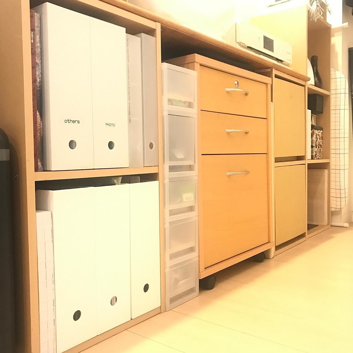 ダンボール引き出しはその名の通りダンボールなので、あまり重いものはおすすめしません。ですが、一番下の段に入れて使うなら床があるので割と入れても引き出せます。下段のほうにたくさんの書類を入れていました。