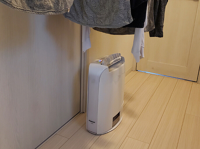特に活躍しているのは「衣類乾燥除湿機」。夜寝ているあいだに洗濯物を乾かしておけば、朝起きたら乾いた洗濯物を収納するだけ。現在は、留守中も乾燥機にお任せです。(@hiiiro_homeさん)