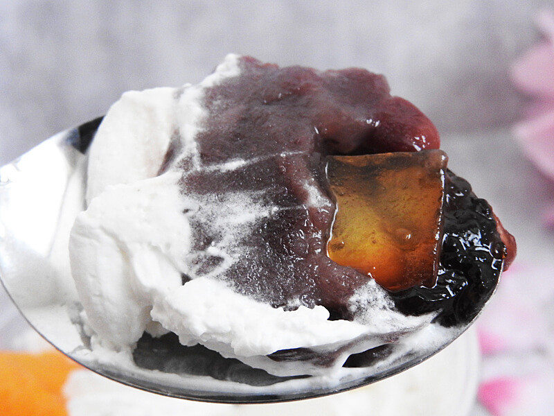 黒蜜ジュレは入っていますが、ホイップクリームや粒あんと食べると存在感がかなり薄めでしたね。