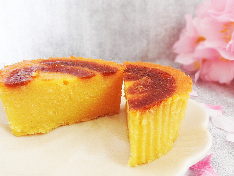 種子島産の安納芋を使った「香ばしスイートポテト」。表面にはカラメル入りの卵黄ソースがかかっていますよ。見た目はちょっとバスクチーズケーキみたいですね。