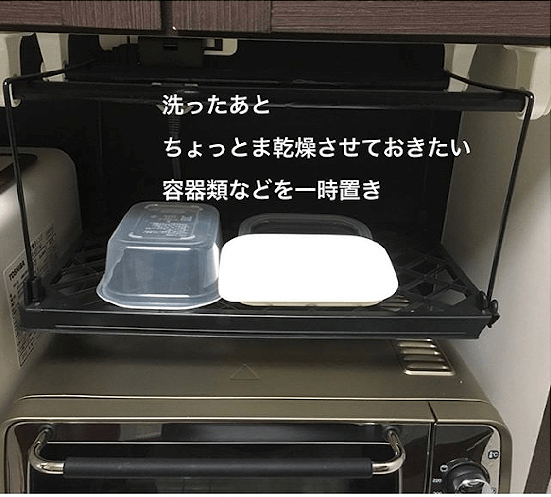 ここに洗い物後の乾きが足りない容器類を置き、完全に乾燥するまで一時置きしているそうです。