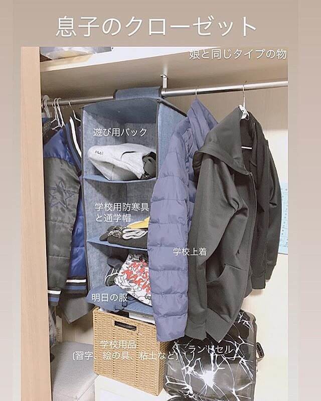 これなら子どもは迷うことなく服を着られるので、「今日着る服は~?」と聞かれる心配がなくなります。慌ただしい朝の時間を無駄にすることなく過ごせますよ。