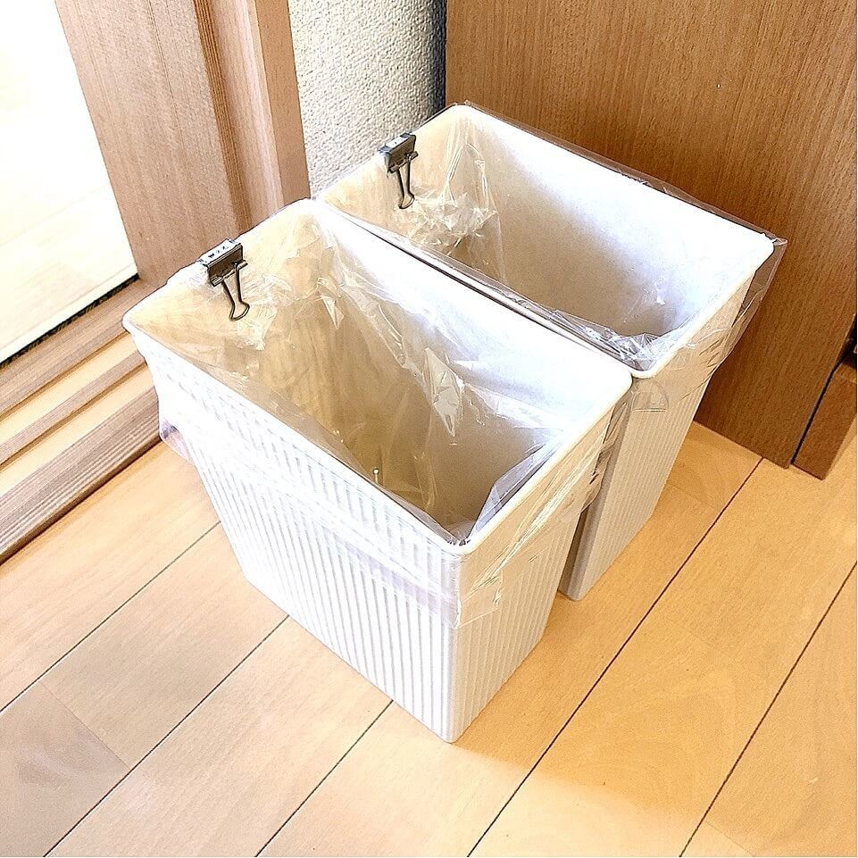 ごみ箱が2つに分かれていると、あとから分別する手間を省くことはできますが、袋をかける事前の手間は2枚分になります。