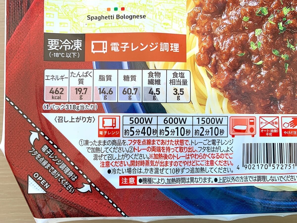 ですが、冷凍のボロネーゼスパゲッティは238円。もしものために買っておいて、冷凍庫に入れておくのにも惜しくない価格ではないかと思います。