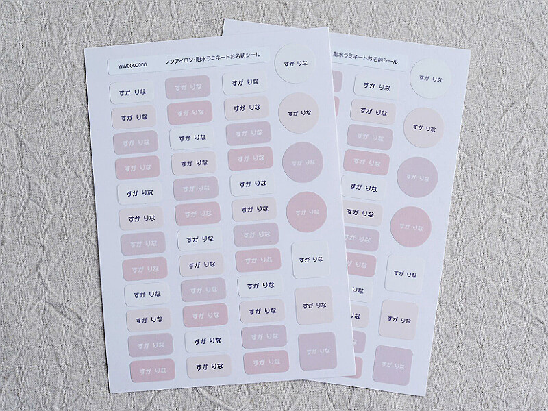 こちらは使いまわしやすいニュアンスカラー。可愛いものを好まない男の子の持ち物にも貼りやすいですね。