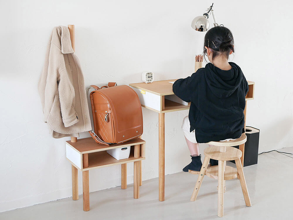 お勉強スペースやダイニングなど、どんな空間でもインテリアの邪魔をせずナチュラルに溶け込んでくれる万能スツールなんです。