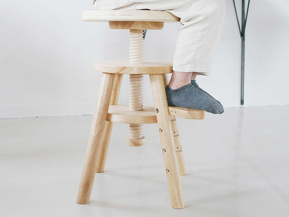 このリフトスツールは、昇降できるのはもちろん、成長に合わせて足置きの位置を変えたり、取り外すことも出来るのが最大の魅力。