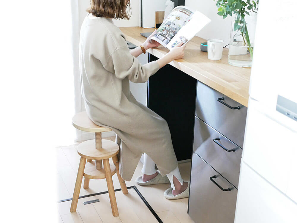 コンパクトなのでキッチン用のスツールに最適で、調理中やちょっとした作業にも便利ですね。
