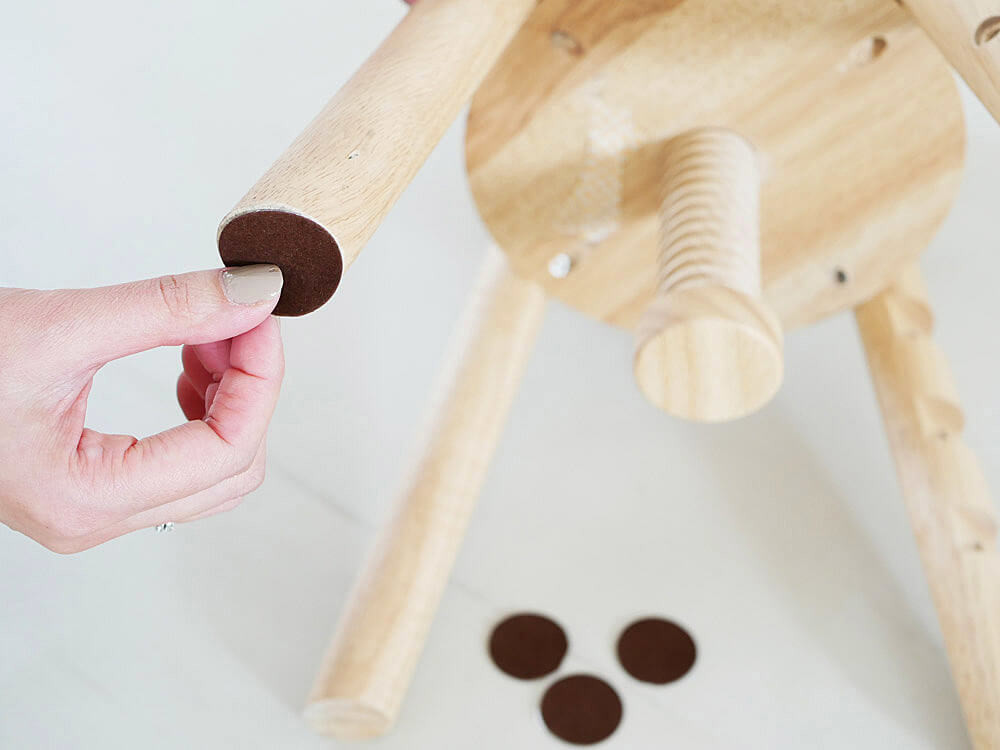 床を傷から守る保護シールが付属しているので、脚の底面に貼って下さい。