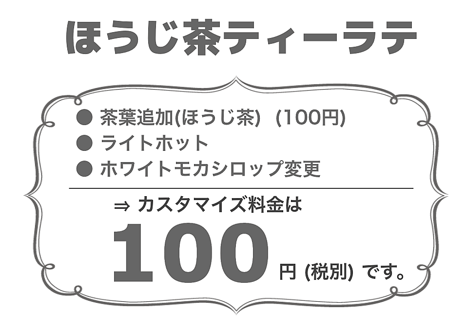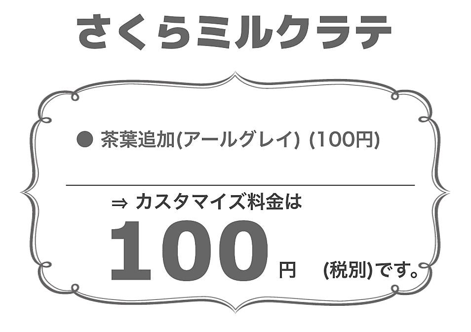 1つの茶葉を追加すると、100円(税別)のカスタマイズ料金がかかります。